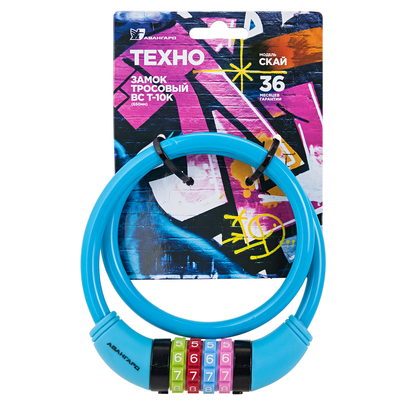 АВАНГАРД ВС-Т10К (650 мм) ТЕХНО СКАЙ кодовый Замок велосипедный тросовый (60,10)