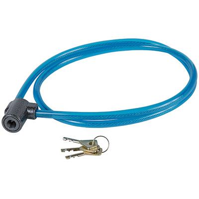 Замок навесной дисковый с тросом. Предназначен для велосипедов, колясок, санок, лодок и тп. Материал корпуса замка — силумин, покрыт полимерной краской. Дужкой замка выступает гибкий вращающийся стальной трос, защищенный пластиковой трубкой. Диаметр троса — 5 мм, длина — 1260 мм. Габариты корпуса — 41х44х27 мм. Замок комплектуется 3 ключами.