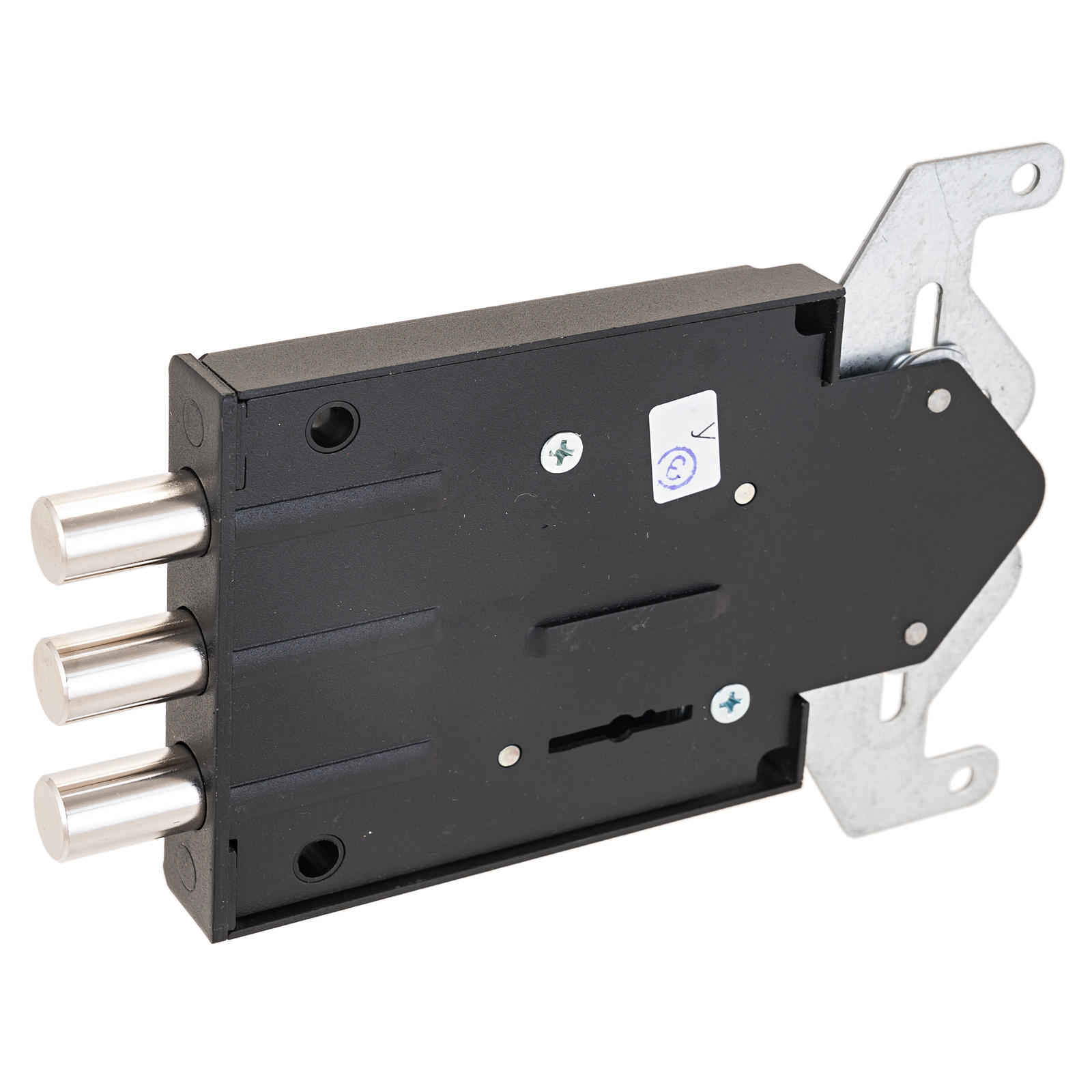 Три цилиндрических ригеля диаметром 13,5мм, вылет 25мм. Удаление ключевого отверстия 70мм. 3 ключа.