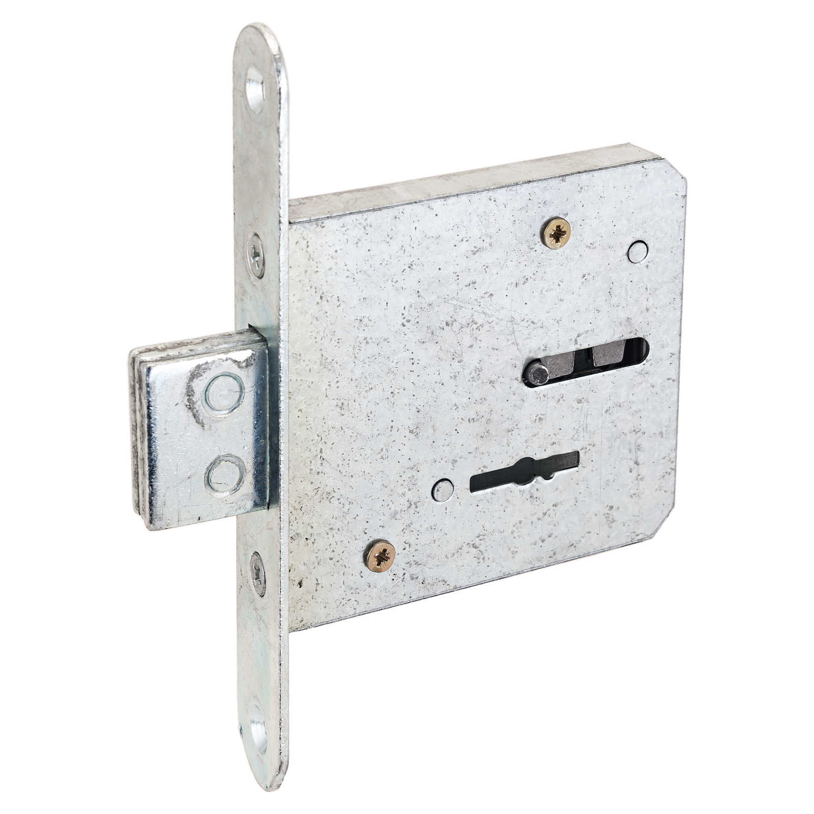 Прямоугольный ригель, вылет 20мм. Удаление ключевого отверстия 52мм. Стальной оцинкованный корпус. 3 ключа.