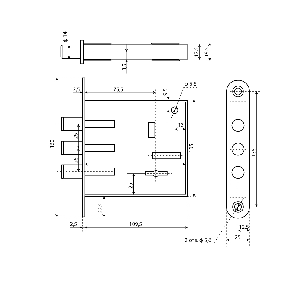 Замок врезной ЗВ 8-7 (закругленная лицевая планка) / Замок врезной ЗВ 8-7 К (прямоугольная лицевая планка).