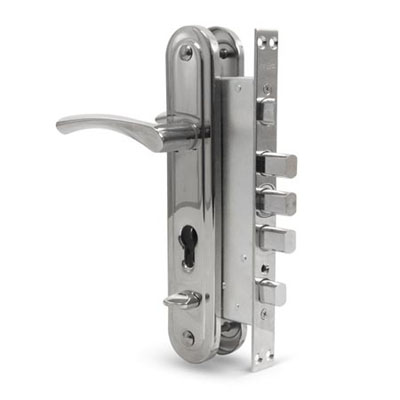 Замок врезной цилиндровый с защелкой, без механизма секрета. Левосторонний. Предназначен для металлических дверей. Замок имеет засов из трех цилиндрических ригелей диаметром 18 мм, с максимальным вылетом 24 мм, и защелку диаметром 20мм. Удаление ключевого отверстия 60мм. Межосевое расстояние 80мм. Габариты замка — 94х188х30мм. Комплектуется ручками.