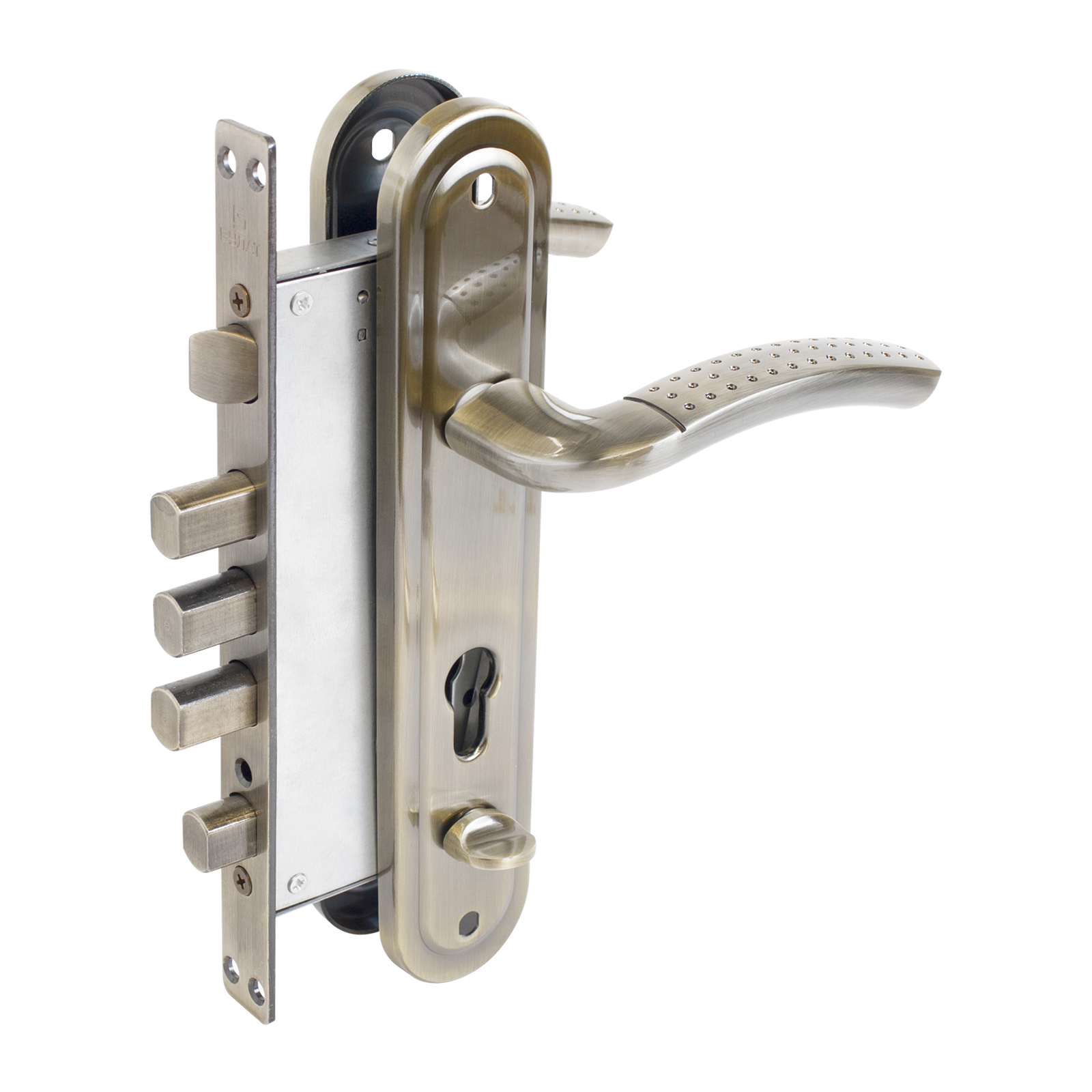 Комплектация: корпус замка, фалевые ручки, ответная планка, винтовые стяжки, саморезы. Цилиндровый механизм в комплект не входит. Сертифицирован в РФ. Гарантийный срок — 5 лет