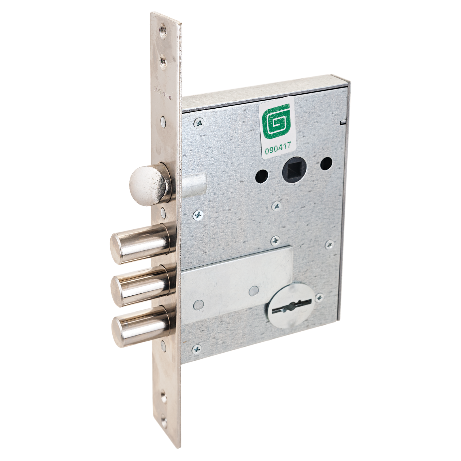 Замок врезной сувальдный с защелкой для металлических дверей. Замок имеет засов из трех цилиндрических ригелей из стали диаметром 15,8мм, с максимальным вылетом 26мм, и защелку диаметром 20мм. Удаление ключевого отверстия 65мм. Межосевое расстояние 77мм. Толщина полотна двери: 40-75 мм. Количество оборотов ключа – 2. Габариты замка — 138х97,5х26 мм. Комплектация — 4 ключа. Переворот защелки выполняется без разбора замка. Бронепластина надежно защищает от высверливания. Дополнительно защищен от самоимпрессии и декодирования.