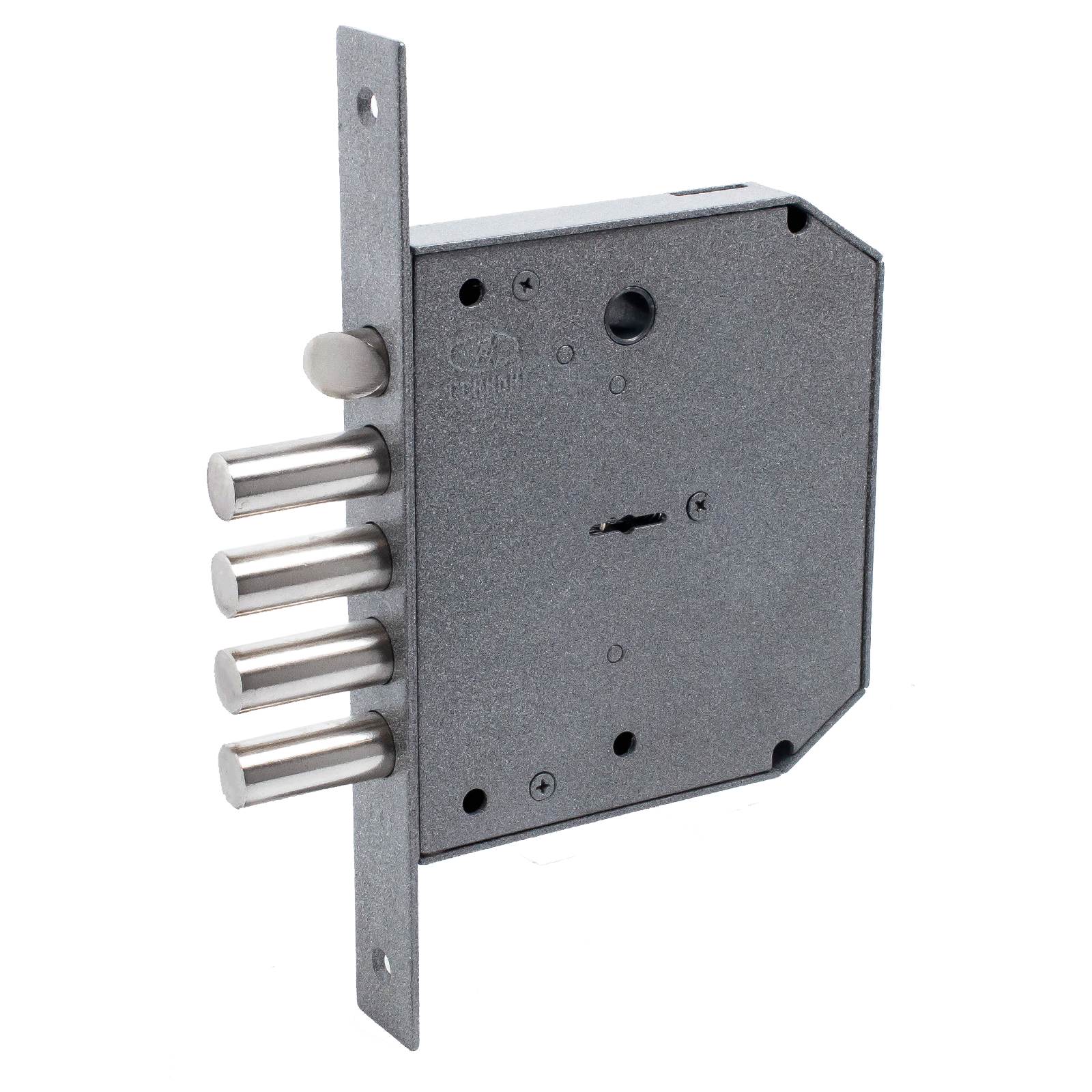 Запирание поворотом ключа, обеспечивает ригель, имеющий четыре пальца диаметром 17 мм с вылетом 42 мм. Защелка обеспечивает фиксацию двери и приводится в действие ручкой.