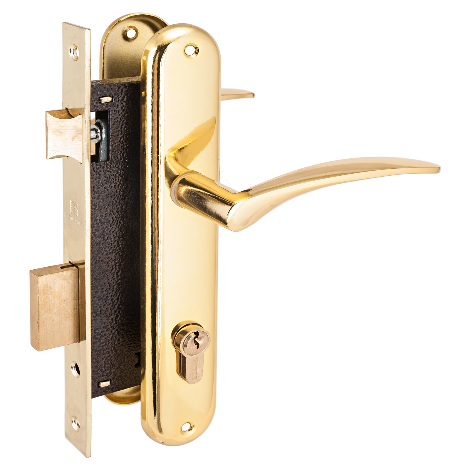 Замок врезной с ручками. Предназначен для установки в деревянные двери толщиной до 40 мм, правого и левого открывания. Дверь может быть закрыта на защелку и открыта с помощью фалевой ручки при открытом засове замка.
