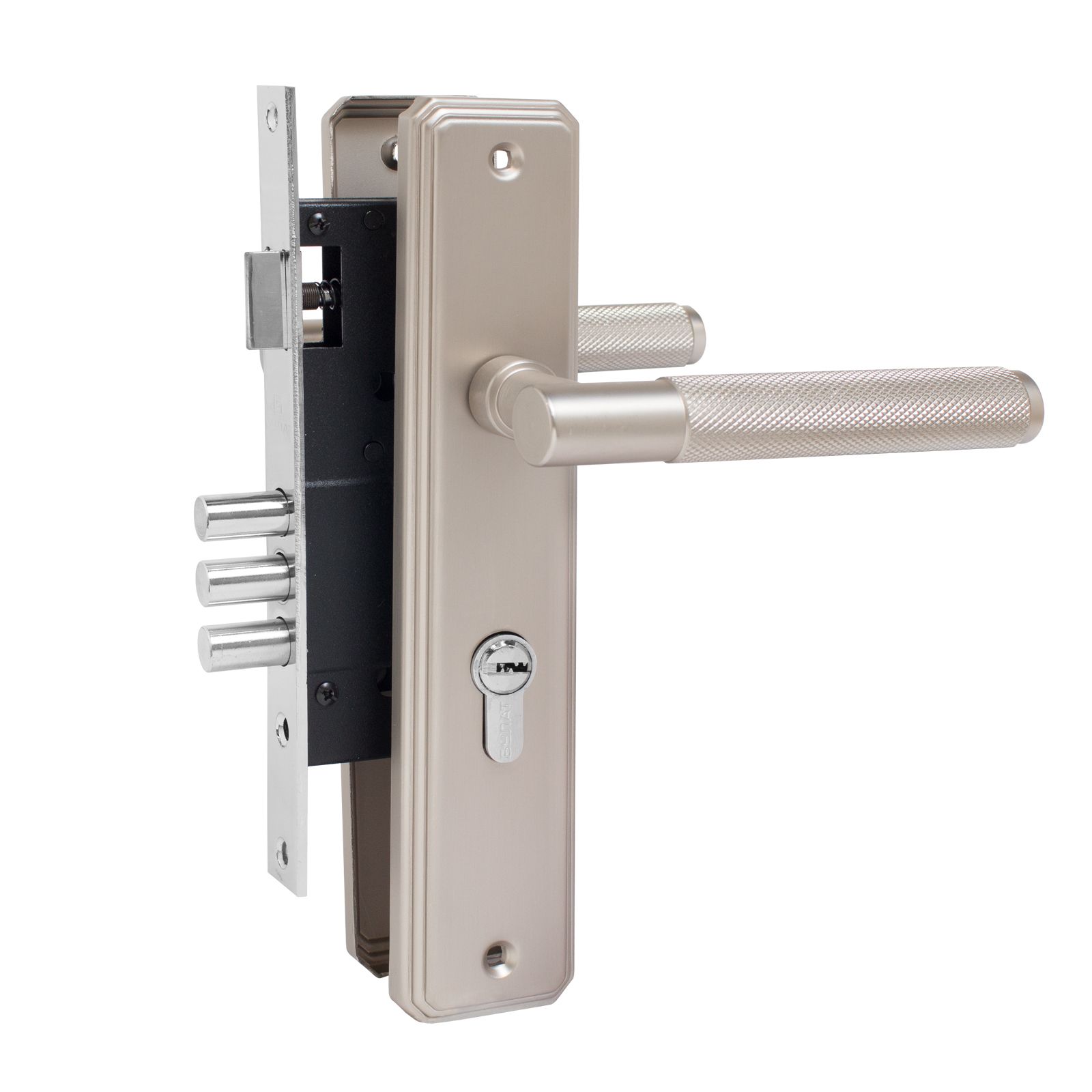 Засов из трех цилиндрических ригелей диаметром 12 мм, с максимальным вылетом 19 мм.