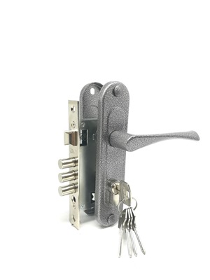 Врезной замок с ручками и цилиндровым механизмом 70 мм (готовый комплект). Межосевое расстояние 61.5 мм. По посадочным размерам совпадает с замками китайского производства с аналогичным межосевым расстоянием. Декоративное покрытие замка и цилиндра — Никель. 5 ключей в комплекте. Упаковка — картонная коробка. Подходит для левых и правых дверей.