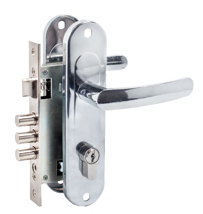 Врезной замок с ручками и цилиндровым механизмом 70 мм (готовый комплект). Межосевое расстояние 61.5 мм. По посадочным размерам совпадает с замками китайского производства с аналогичным межосевым расстоянием. Декоративное покрытие замка и цилиндра — Никель. 5 ключей в комплекте. Упаковка — картонная коробка. Подходит для левых и правых дверей.