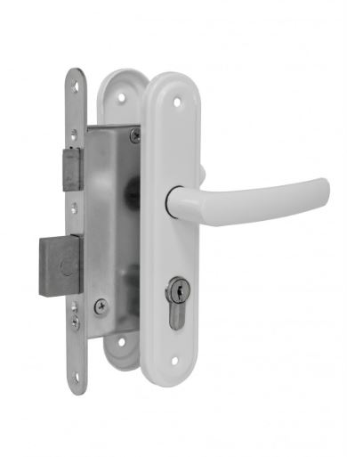 Корпус замка , цилиндровый механизм длиной 70 мм с 4 кл, винт крепления, ручки на планке , ответная планка, квадратный стержень, шурупы 4х25 — 8 шт