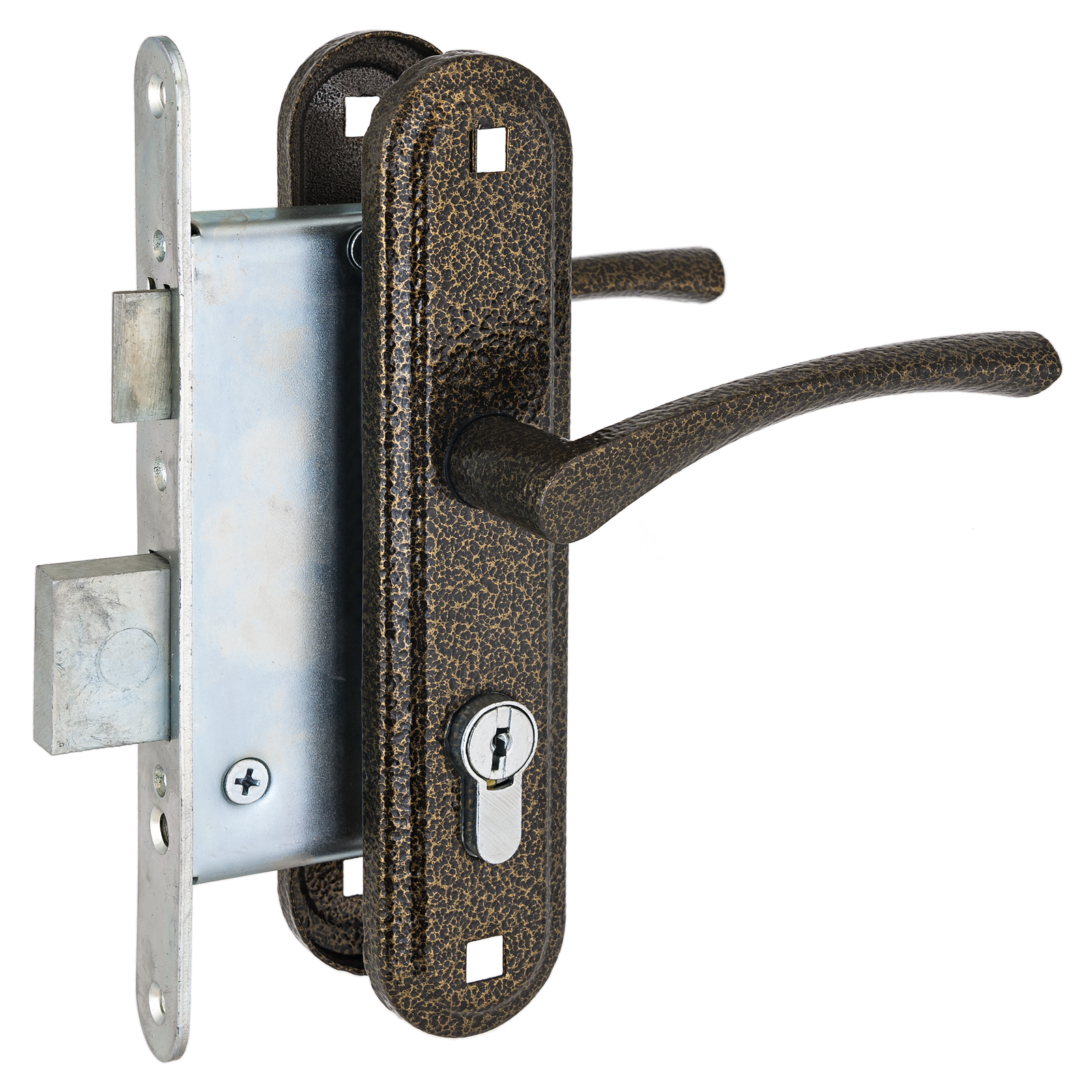 Комплектация: цилиндровый механизм 70 мм, 4 ключа, ответная планка, винтовые стяжки, саморезы.