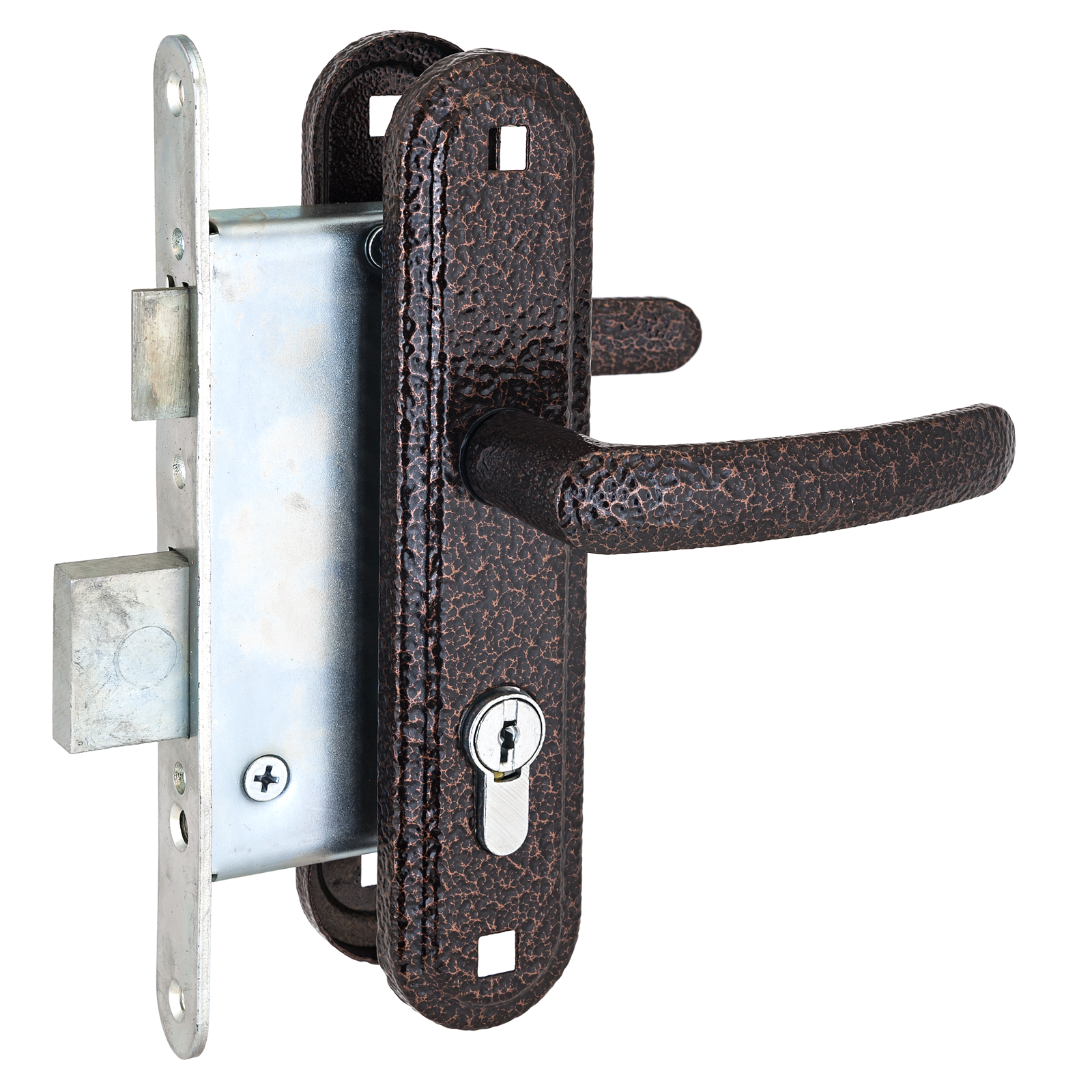 Комплектация: цилиндровый механизм 70 мм, 4 ключа, ответная планка, винтовые стяжки, саморезы.