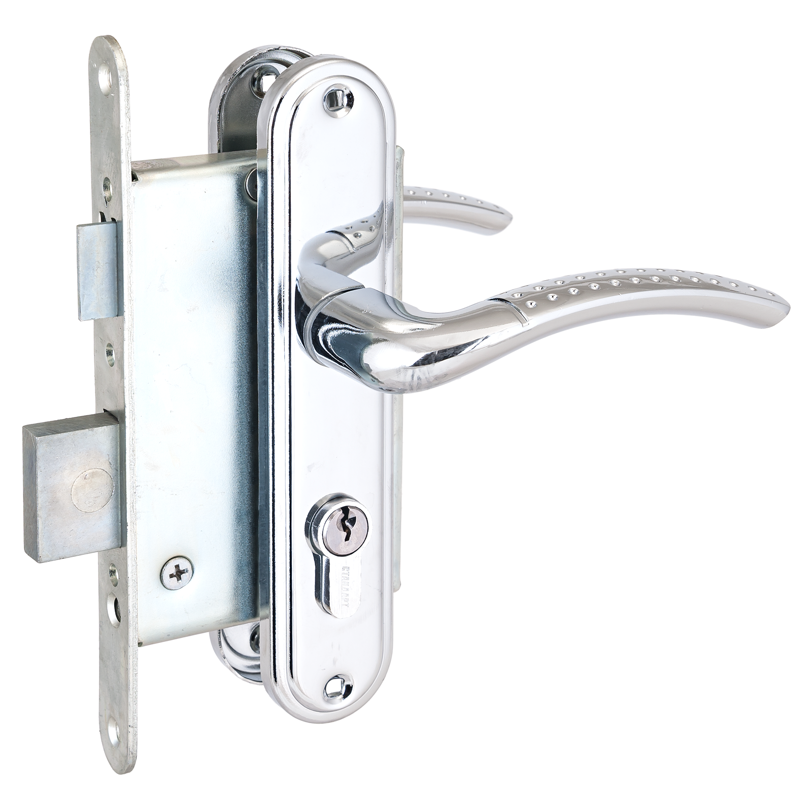 Комплектация: цилиндровый механизм 70 мм, 3 ключа, ответная планка, винтовые стяжки, саморезы.
