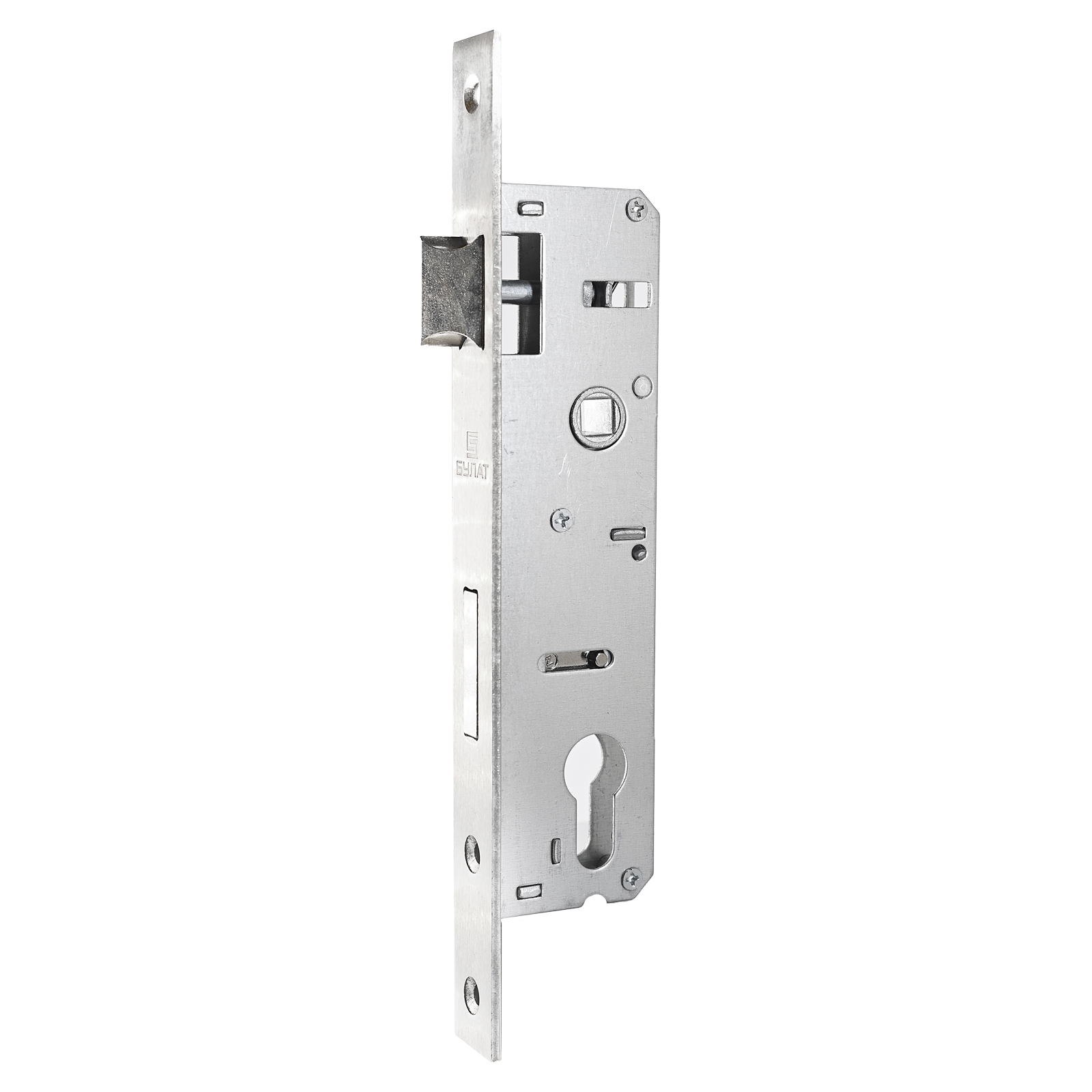 Корпус замка врезного. Предназначен для установки в двери из алюминиевого профиля и калитки, правого и левого открывания. Дверь может быть закрыта на защелку и открыта с помощью фалевой ручки (в комплект не входит) при открытом засове замка. Прямоугольный засов размером 35х8 мм, с максимальным вылетом 20 мм. Универсальная защелка. Стальной оцинкованный корпус. Межосевое расстояние 85 мм. Удаление ключевого отверстия 30 мм.Торцевая и ответная планка — нержавеющая сталь. Комплектация: корпус замка, ответная планка, винты крепежа. Цилиндровый механизм в комплект не входит. Сертифицирован в РФ. Гарантийный срок — 5 лет.
