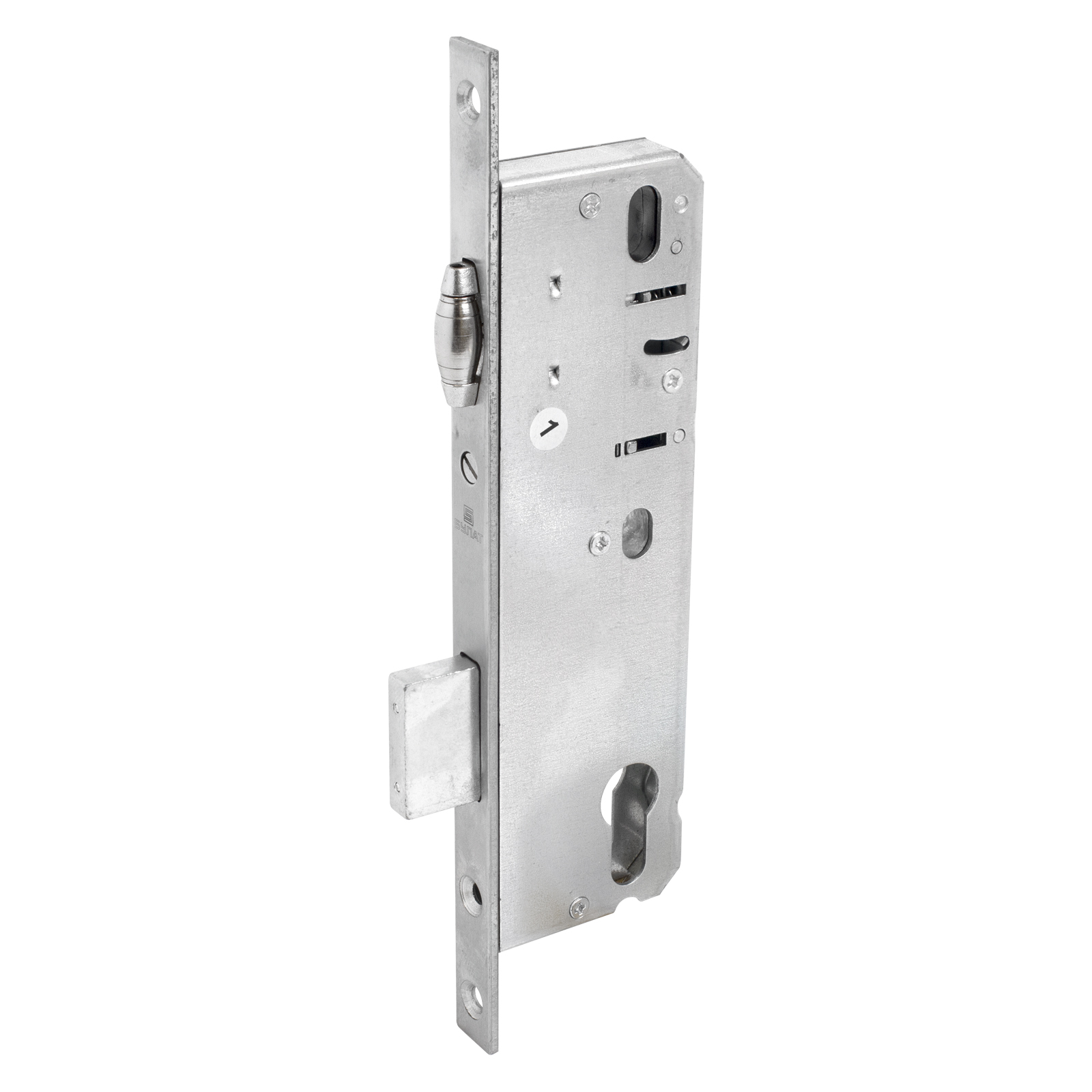 Корпус замка врезного. Предназначен для установки в двери ПВХ профиля, правого и левого открывания. Прямоугольный засов размером 35х8 мм, с максимальным вылетом 20 мм. Универсальная роликовая защелка. Стальной оцинкованный корпус. Удаление ключевого отверстия 40 мм.Торцевая и ответная планка — нержавеющая сталь. Комплектация: корпус замка, ответная планка, винты крепежа. Цилиндровый механизм в комплект не входит. Сертифицирован в РФ. Гарантийный срок — 5 лет.