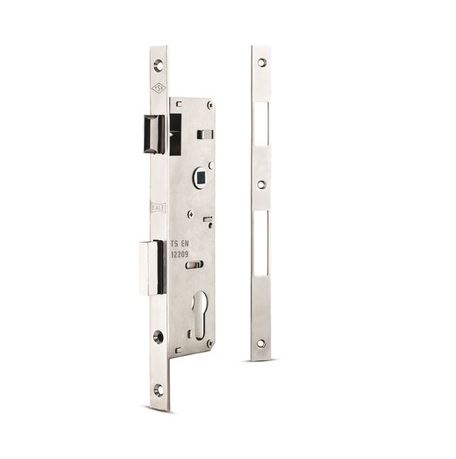 С отверстиями под ручки 8 мм х 8 мм, с межосевым расстоянием 92 мм, бэксет 25 мм, с ответной планкой в комплекте, без декоративных накладок на ключевину. Класс взломостойкости 2.
