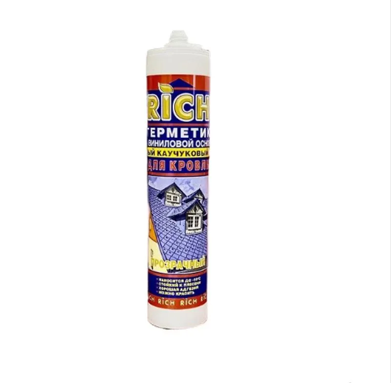 Герметик кровельный каучуковый прозрачный RICH применяется при проведении ремонта и строительстве, наиболее востребован при кровельных работах.