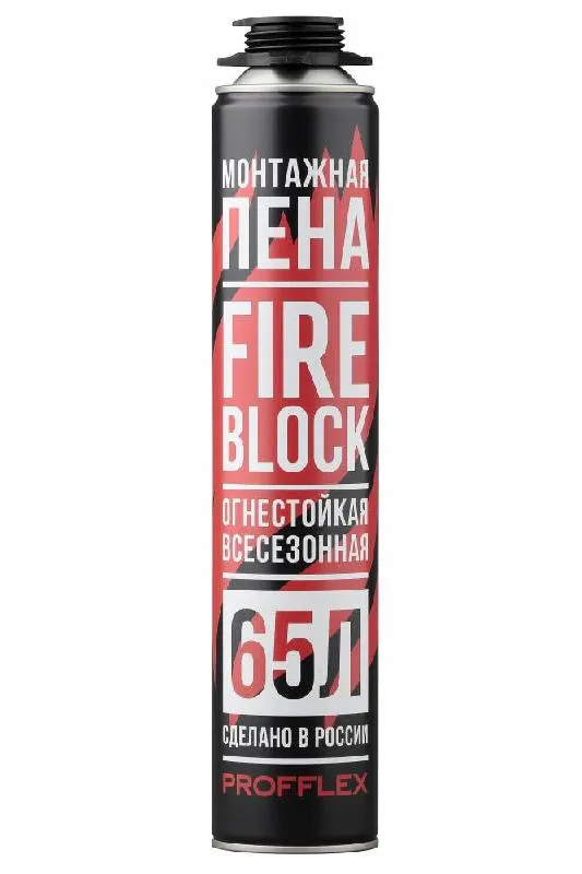 Пена противопожарная PROFFLEX FIRE BLOCK 65 применяется при установке дверных и оконных блоков, теплоизоляции, монтаже системы водоснабжения, канализации, отопления, вентиляции и кондиционирования, а также при бытовом ремонте.