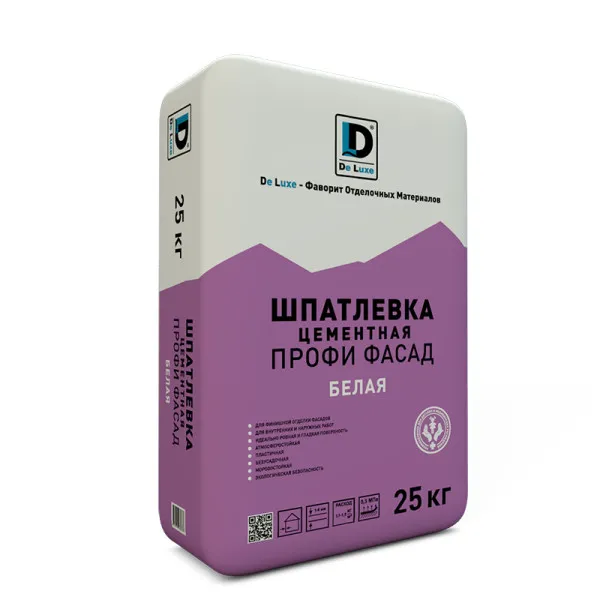 Вы можете заказать Шпатлевка Фасадная белая «Профи» -25кг De Luxe в строительном гипермаркете Строймашсервис-Мск с доставкой по Москве, Московской области и всей России.